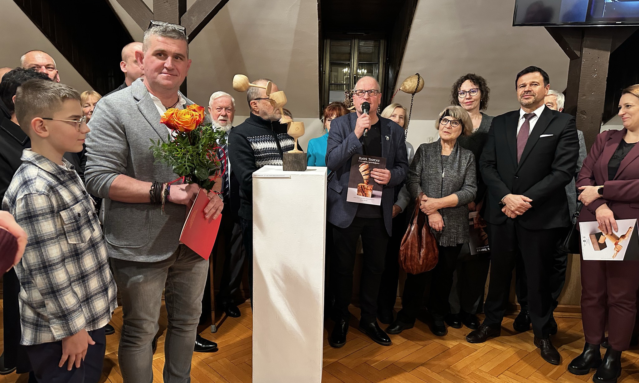 RADEK TETERYCZ urodzony w 1978 roku w Zamościu, to artysta samouk, od 20 lat zafascynowany drewnem, szczególnie tym porzuconym, niechcianym, zapomnianym. Jego prace wykonane są z drzew połamanych przez wiatr czy też przewróconych ze starości. Materiał na rzeźby przywozi z roztoczańskich wsi ratując przed spaleniem, nadając mu nowe życie. Prace wykonuje przy użyciu tokarki, z wykorzystaniem tradycyjnych metod obróbki drewna. Tworzy unikatowe w skali światowej rzeźby toczone w wielu osiach i płaszczyznach z jednego kawałka drewna. Rzeźbienie pozwala mu odkrywać siebie.