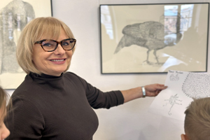 Autorka wystawy, Elżbieta Dudek, poprowadzi warsztaty plastyczne pt. „Między ciszą a linią”.